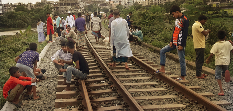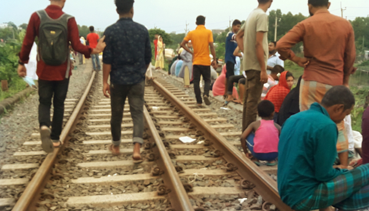 জয়দেবপুরের রাস্তায় মানুষ কম থাকলেও রেল রাস্তায় লোকে লোকারণ্য!